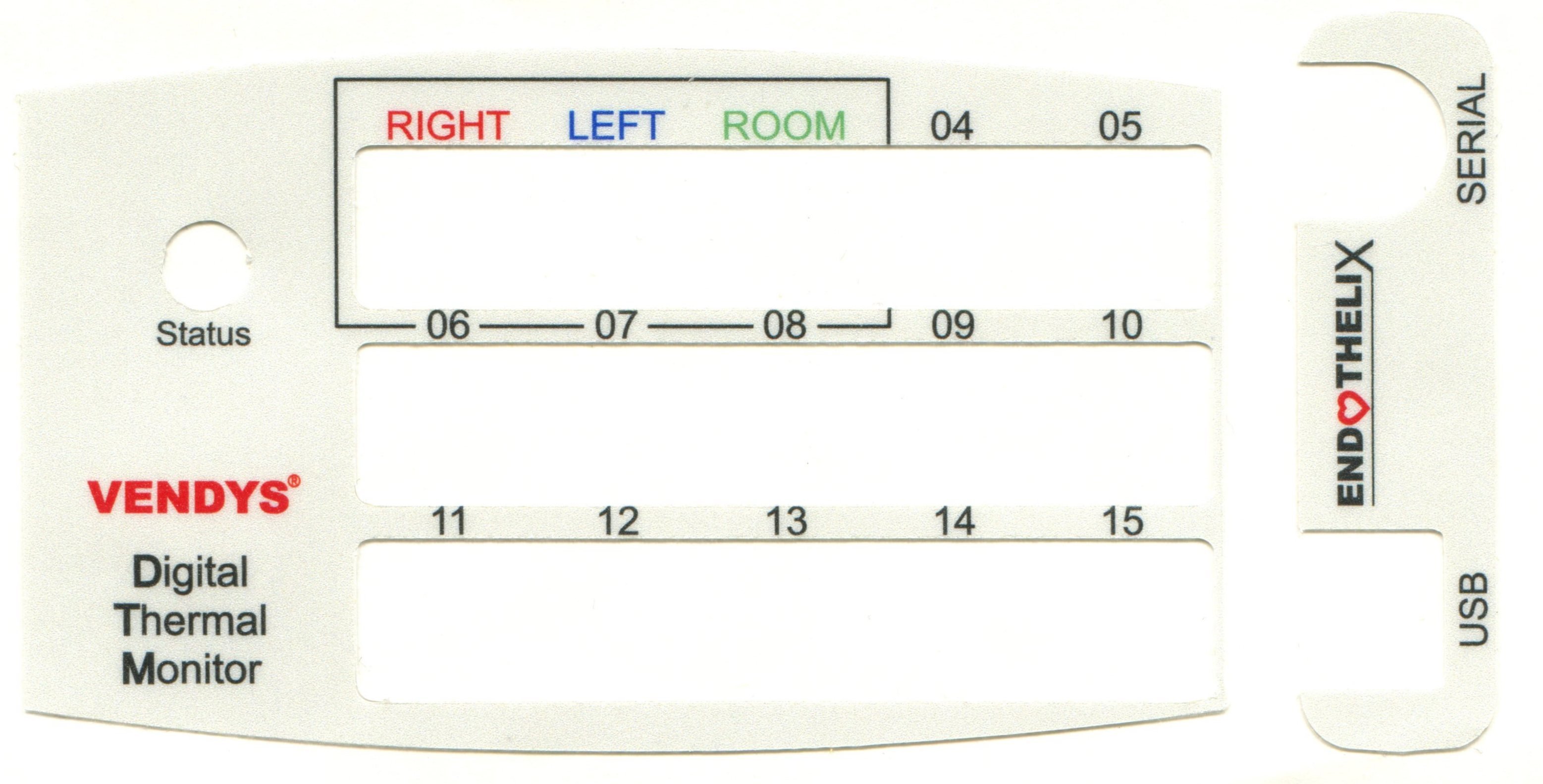 The polycarbonate overlay set shown above is manufactured from 3 mil polycarbonate with LSE (Low Surface Energy) pressure sensitive adhesive. The overlay set is for use on an indoor application - medical equipment.